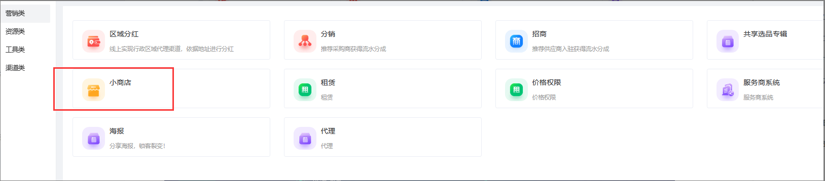 入口:应用--营销类--小商店
