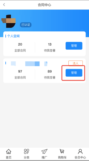 进入商城个人中心--电子合同,选择企业--管理