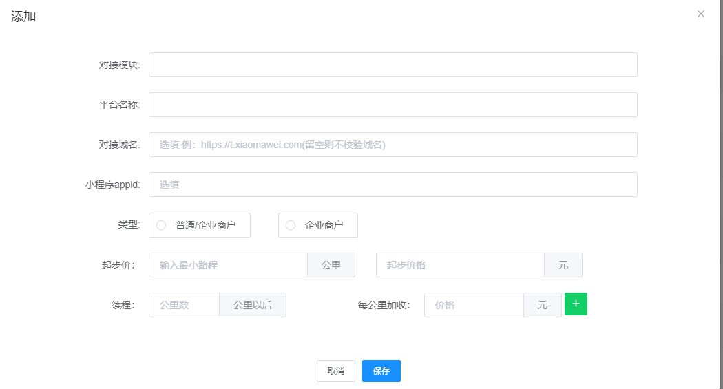 2.添加对接平台,设置运费价格