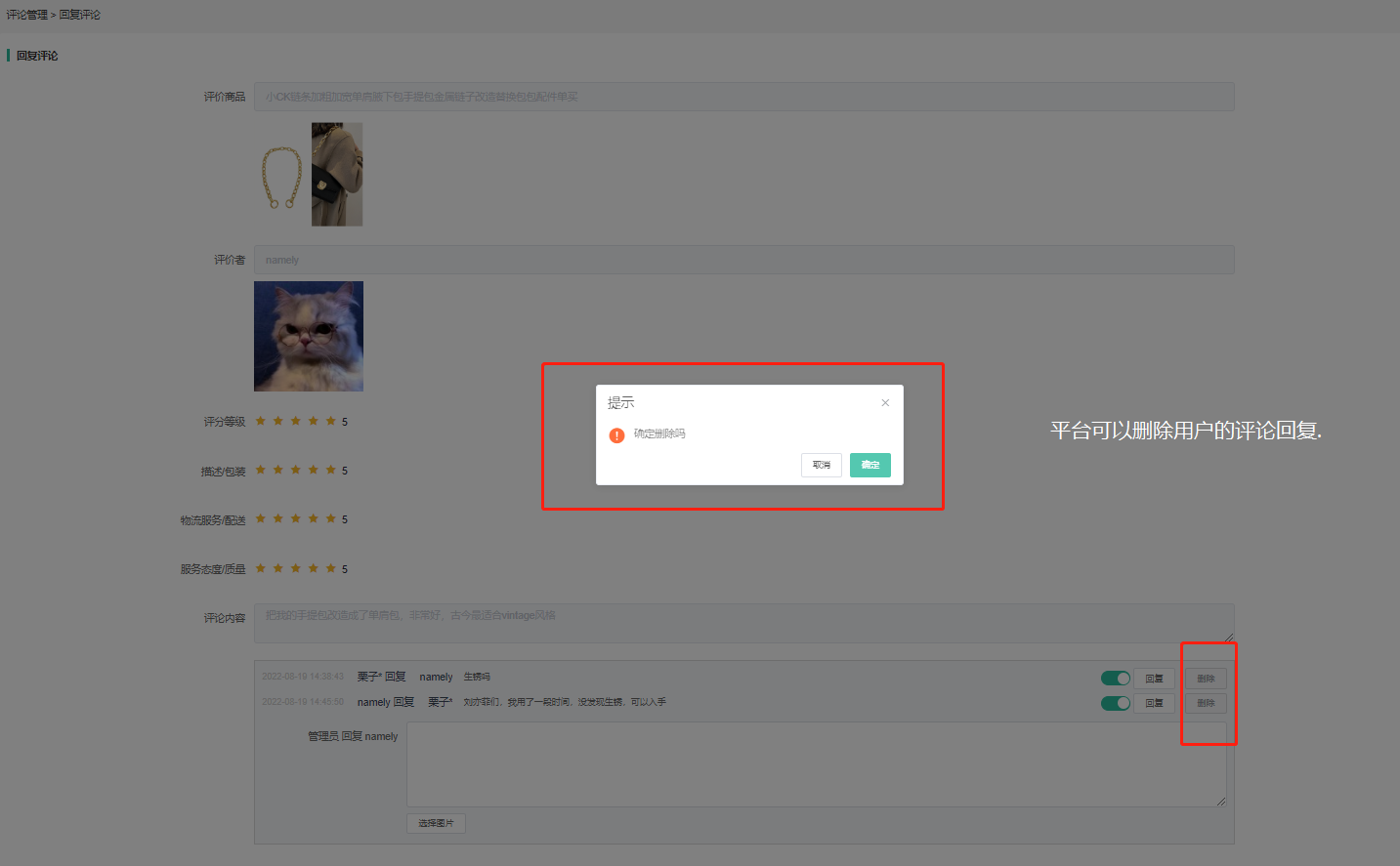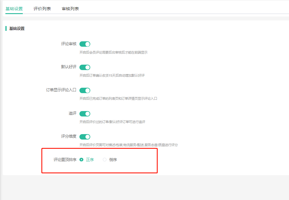 开启后会员评论(首次评价、追评)需要后台审核后才能在前端显示。用户对主评论的回复不用审核,可直接显示。